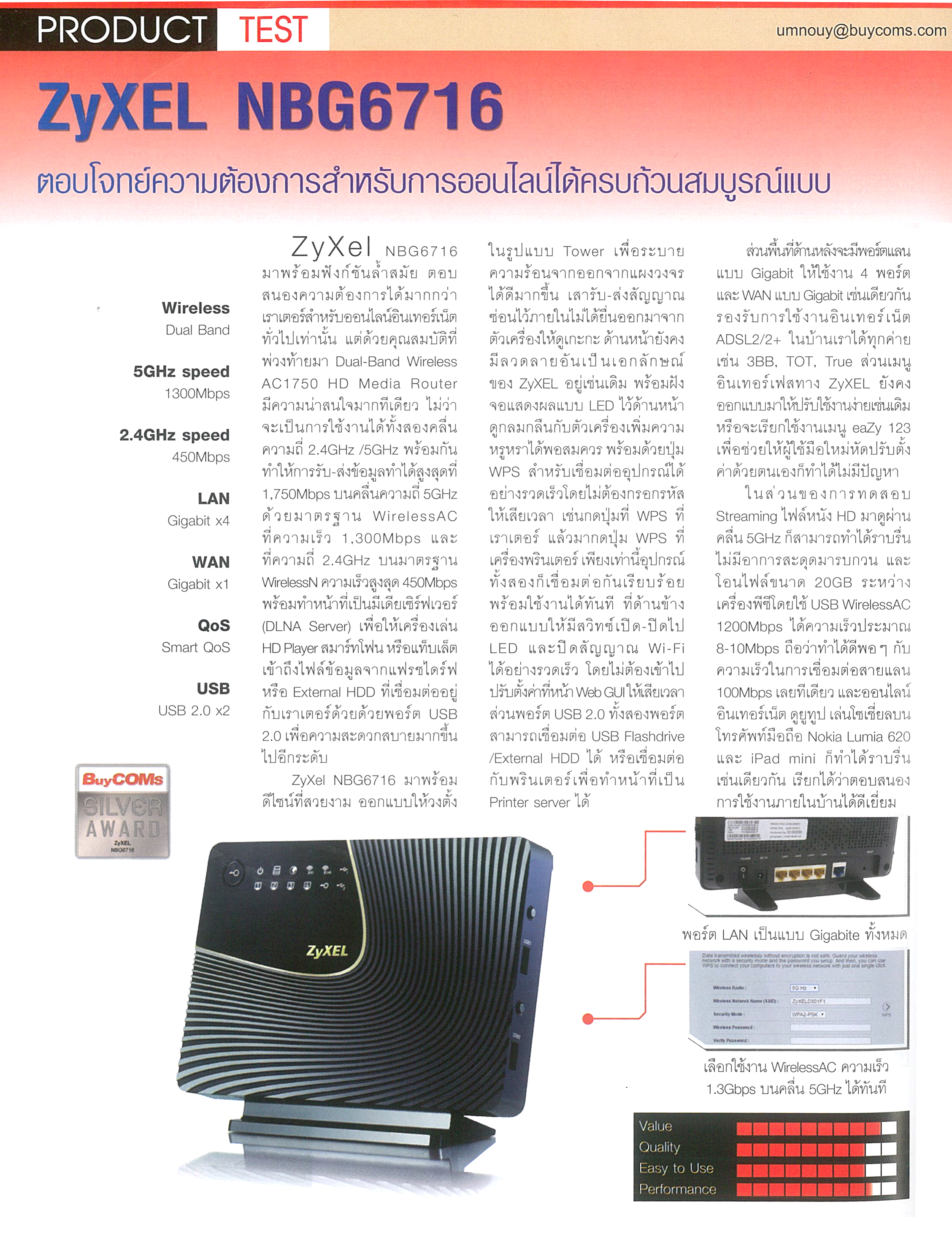 ZyXEL's GS1900-8HP, an 8-port GbE Smart Managed Switch, was reviewed by Micro Computer Magazine of Thailand.