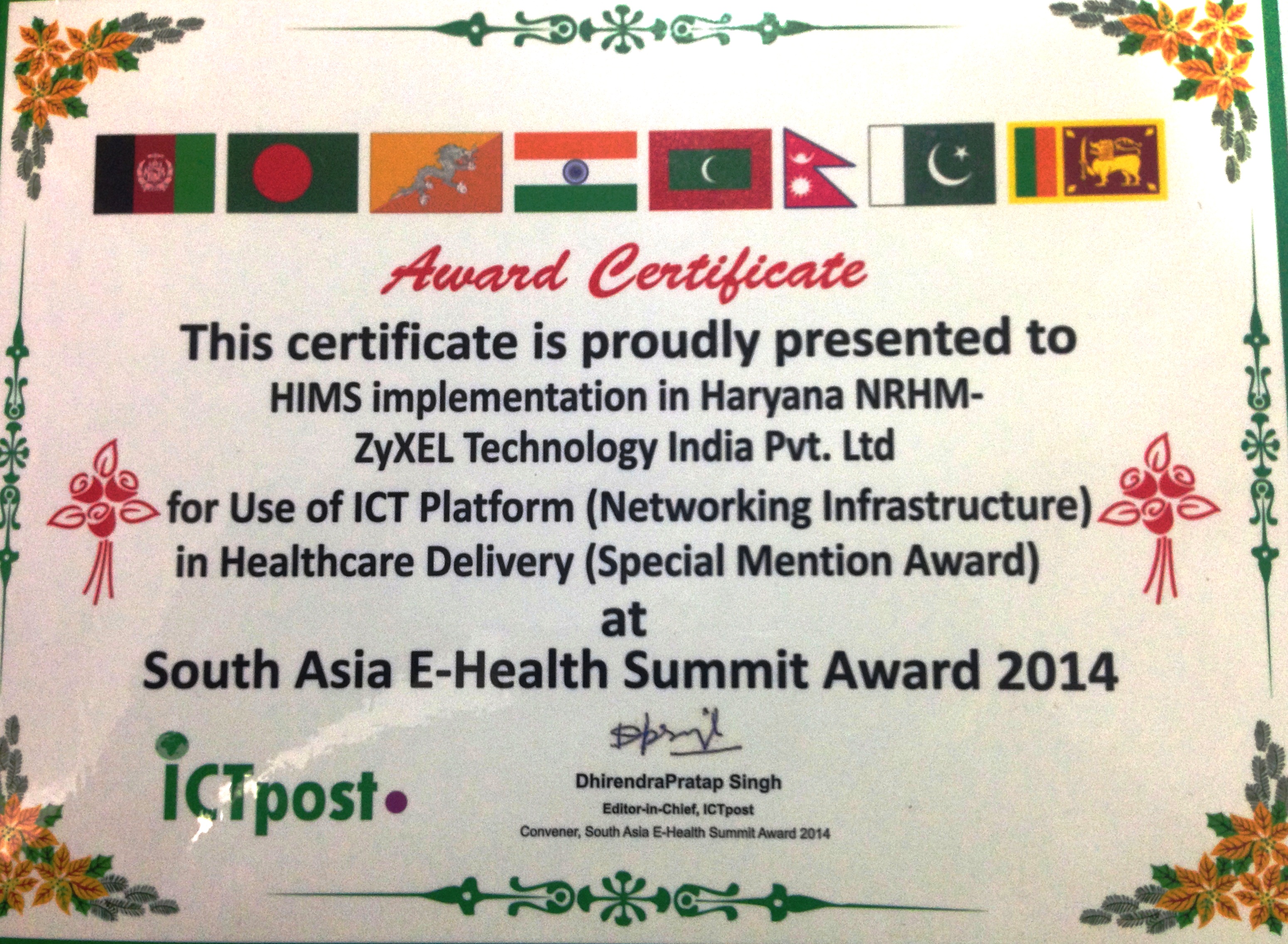 ZyXEL won the South Asia E-Health Summit Award 2014 for integrating the ICT platform, a networking infrastructure, in healthcare delivery.