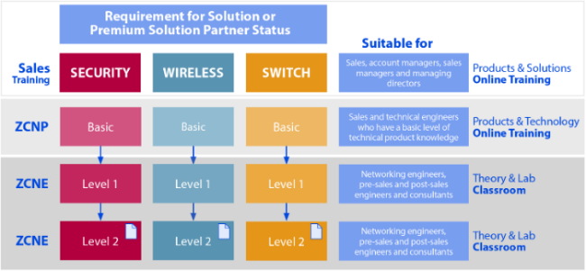 Certifikační program Zyxel se zaměřuje na více oblastí. V současné době lze program ZCNE absolvovat ve třech oblastech: Ethernet Switch, Security a Wireless LAN.