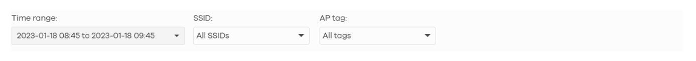 The WiFi Aid feature can be accessed through the sidebar menu: Site-wide > Clients, and then click on the WiFi Aid tab. You can choose the time range, SSID, and AP tag to filter the results displayed.