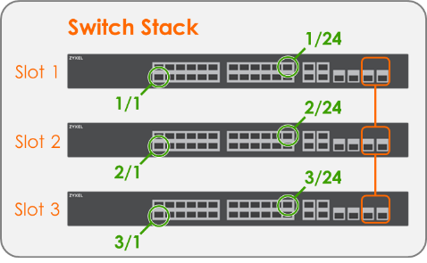 The Cloud Stacking GUI on Nebula remains relatively the same except for identifying specific switch ports. All port-related settings have been labelled with their respective slot number – “[Slot #] / [Port #]”, as shown below.
