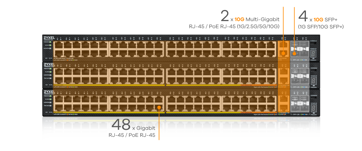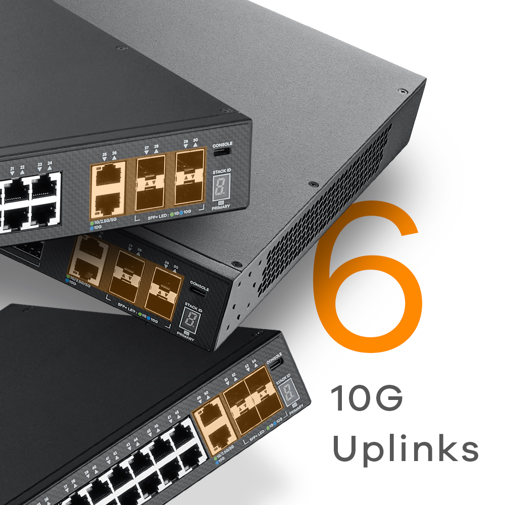 PoE models come with 10 ports of PoE++ (IEEE 802.3bt) offering up to 60 W per port and 16-40 ports of PoE+ (IEEE 802.3at) delivering up to 30 W per port to meet a variety of applications, including the latest generation of Wireless Access Points.
