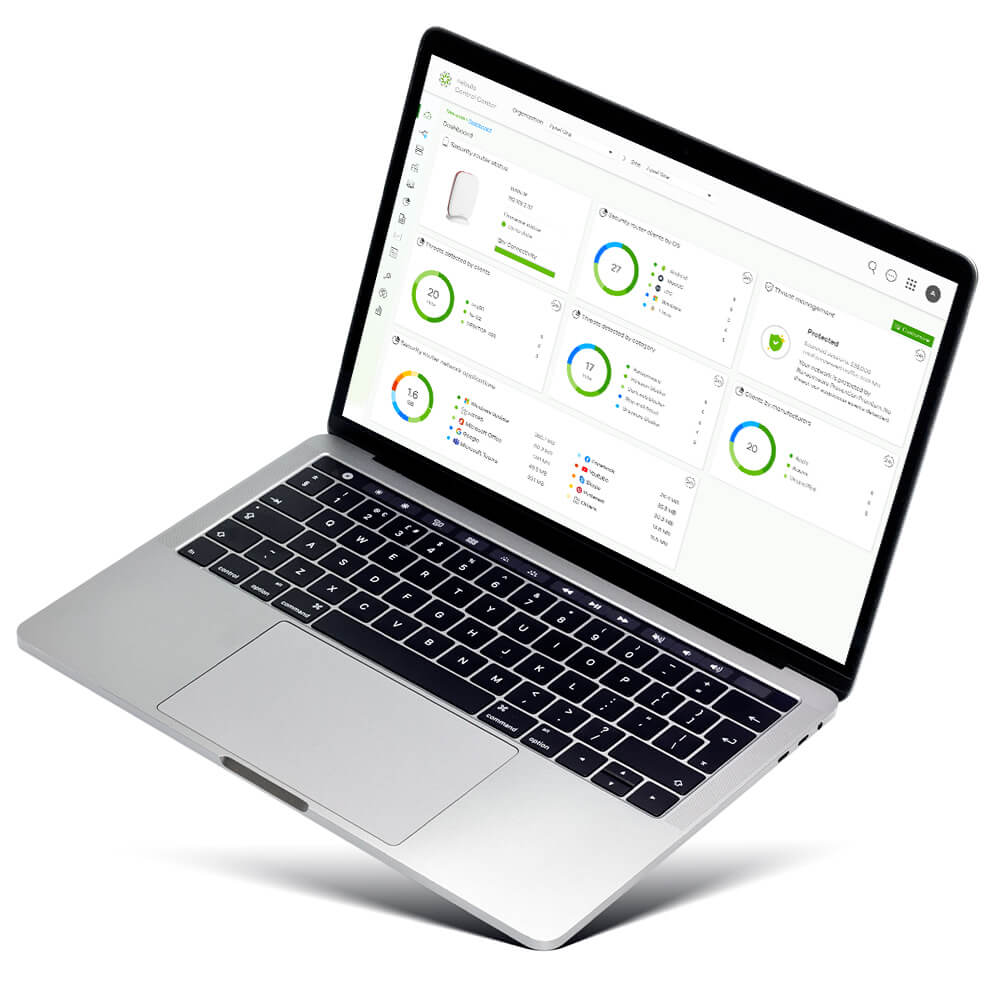 只需輕點幾下,您的設備就會在幾分鐘內啟動並運行。 您還可以透過訊息豐富的安全儀表板查看安全級別的狀態和威脅事件的分析。