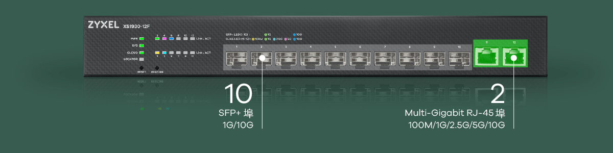 XS1930-12F具備的10個SFP+光纖埠以及進階功能,讓多種接取端交換器如XGS1930(具備10G上行鏈路埠的Giga交換器)提供高頻寬骨幹網路,以靈活滿足各種網絡基礎設施需求。